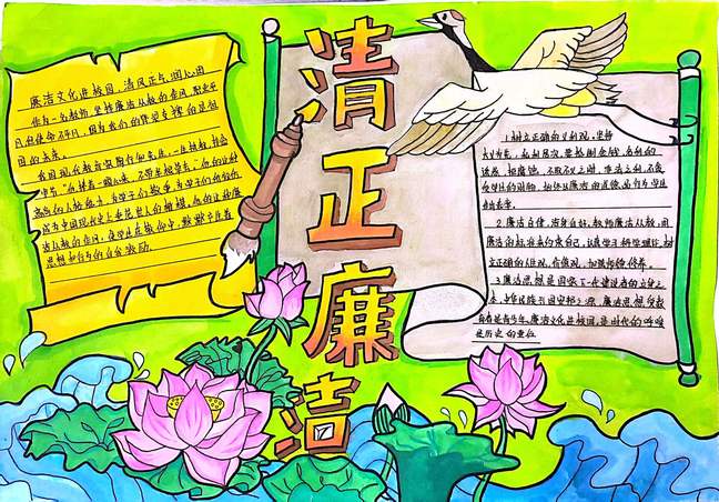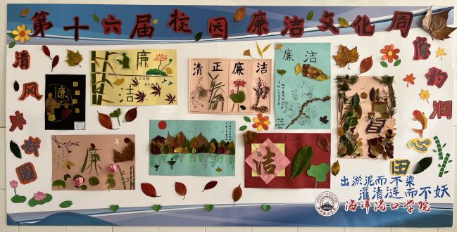初等教育学院举办廉洁摄影大赛,从日常用品、校园文化着手,将廉洁文化与摄影艺术相融合,用一张张生动鲜活的摄影作品展示出师生对廉洁文化的诠释与理解;学前教育学院(音乐学院)开展廉洁文化壁纸设计征集活动,通过图片制作软件,以荷花、梅花等图片配以廉洁格言警句,设计出一张张“廉洁电脑壁纸”和“廉洁手机壁纸”;文学院开展师生书法作品征集活动,将清廉形于笔端,通过艺术感染、文化浸润的方式,把廉洁教育形象、生动地传递给广大学子;美术学院开展绘画作品征集活动,同学们充分发挥想象力,用画笔描绘对廉洁的理解,国画漫画油画,各具特色,体现了师生对廉洁文化的深刻理解和精准把握;马克思主义学院举办主题征文活动,内容涵盖中华优秀传统文化、红色革命文化、社会主义先进文化和优良家风等;海洋港口学院举办树叶贴画活动,同学们围绕活动主题,精心挑选、裁剪树叶,合理设计贴画布局,一幅幅精美的树叶贴画展现出同学们心中的廉洁意蕴;数学与信息工程学院举办廉洁原创微视频征集活动,以廉洁小短剧或动画小短片形式诠释廉洁主题,用小故事讲大道理,让廉洁文化建设有责也有趣;外语与商务学院(国际教育学院)开展手抄报征集活动,精心设计版面,运用仙鹤、荷花、竹子等国风元素,生动展现了中国传统廉洁文化的思想内涵;体育学院线上举办廉洁文化知识竞赛,竞赛分为必答题、抢答题、风险题、观众题四个环节,同学们沉着冷静,应答如流,掀起一股廉洁教育知识头脑风暴。图书馆开展廉洁主题阅读活动,师生通过读廉洁书籍,培养崇廉尚洁的价值理念,传递廉洁向善向上的正能量,营造风清气正的教育环境。