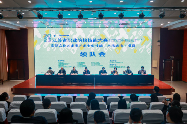 3月9日,由省教育厅、省发改委等16个部门、组织主办的2023年江苏省职业院校技能大赛高职艺术专业技能(声乐表演)赛项在我校拉开帷幕,大赛专家组、裁判组、仲裁组及来自全省各参赛院校的50余名领队和指导教师代表参加了开幕式。