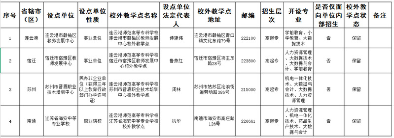 连云港师范高等专科学校高等学历继续教育2025年拟备案校外教学点公示
