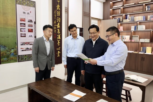 胡部长一行参观考察了思政名师工作室、诗教馆、科技实训室、彦涵美术馆、校史馆等,并听取了学校工作情况汇报。